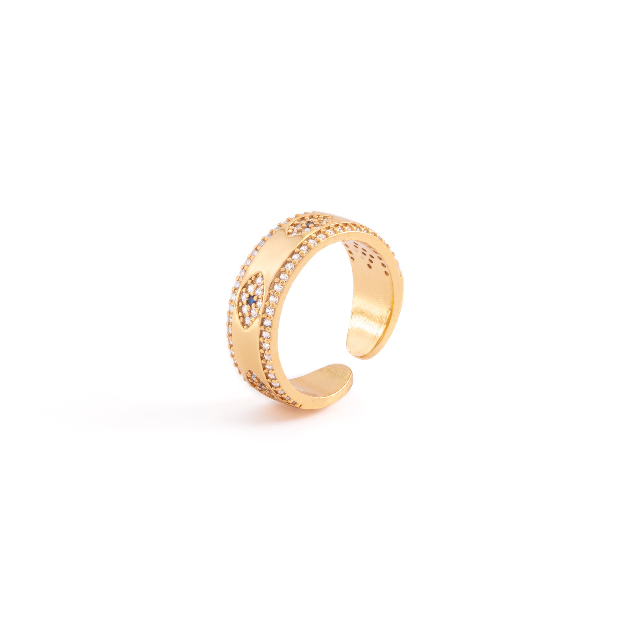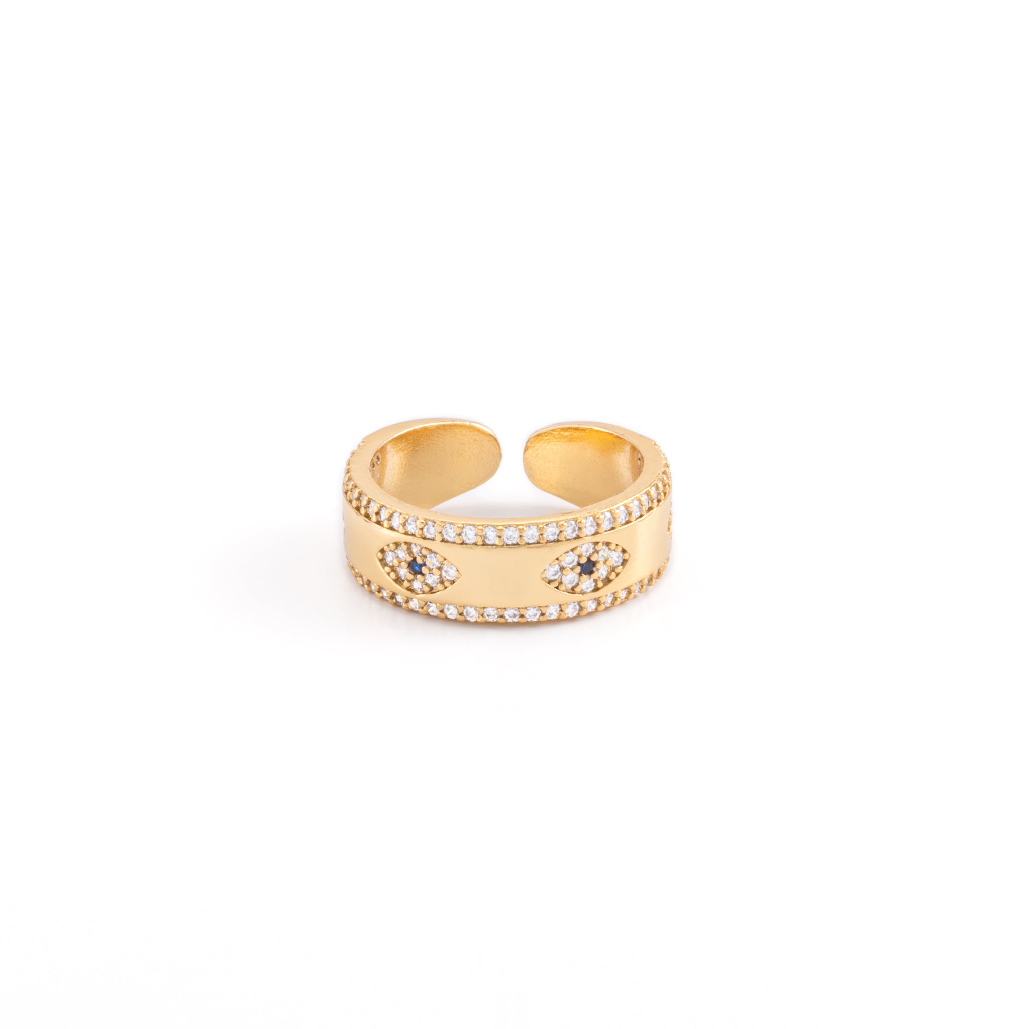 ANILLO CON DISEÑO DE OJITOS. Baño de oro. Joyería hipoalergénica....