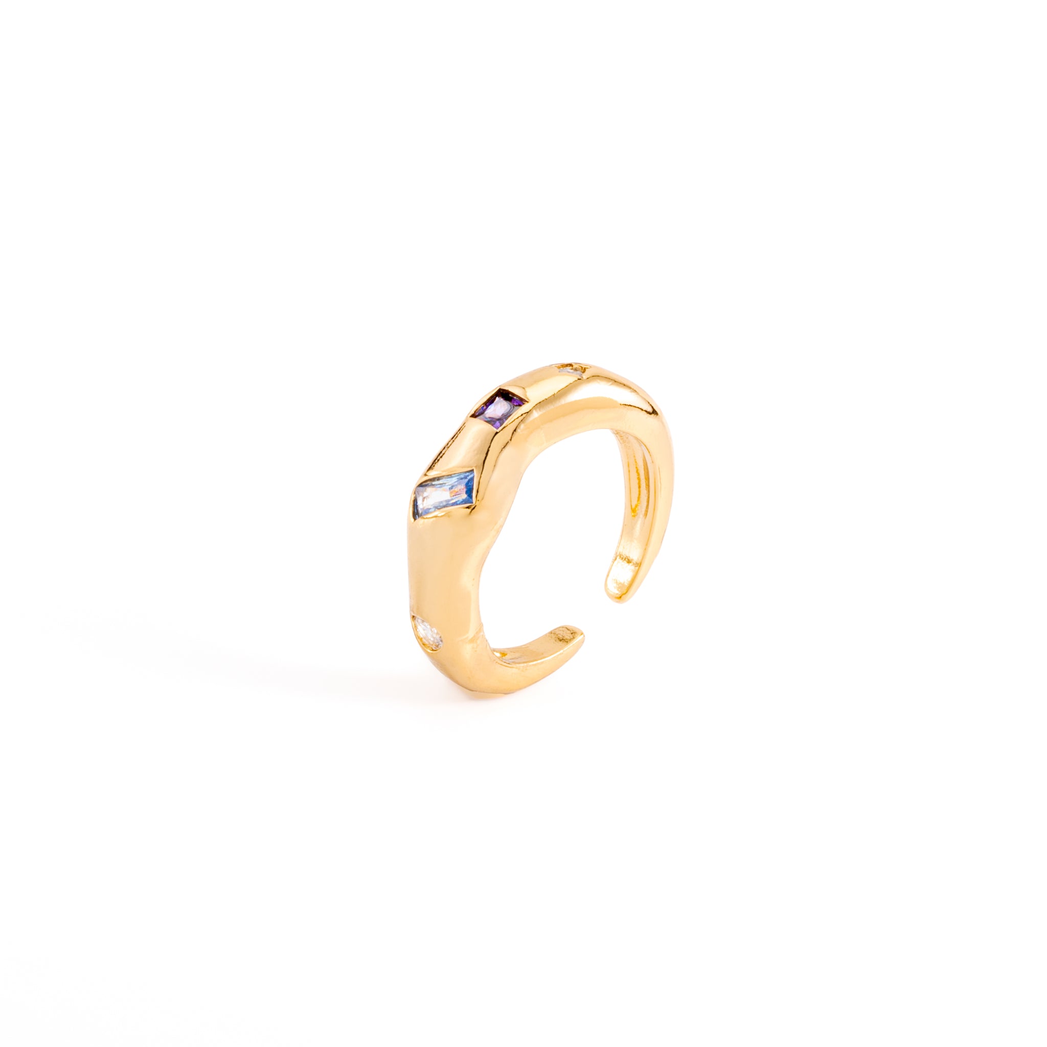 ANILLO AJUSTABLE DESIGUAL CON PIEDRA RECTANGULAR. Baño de oro. Joyería...