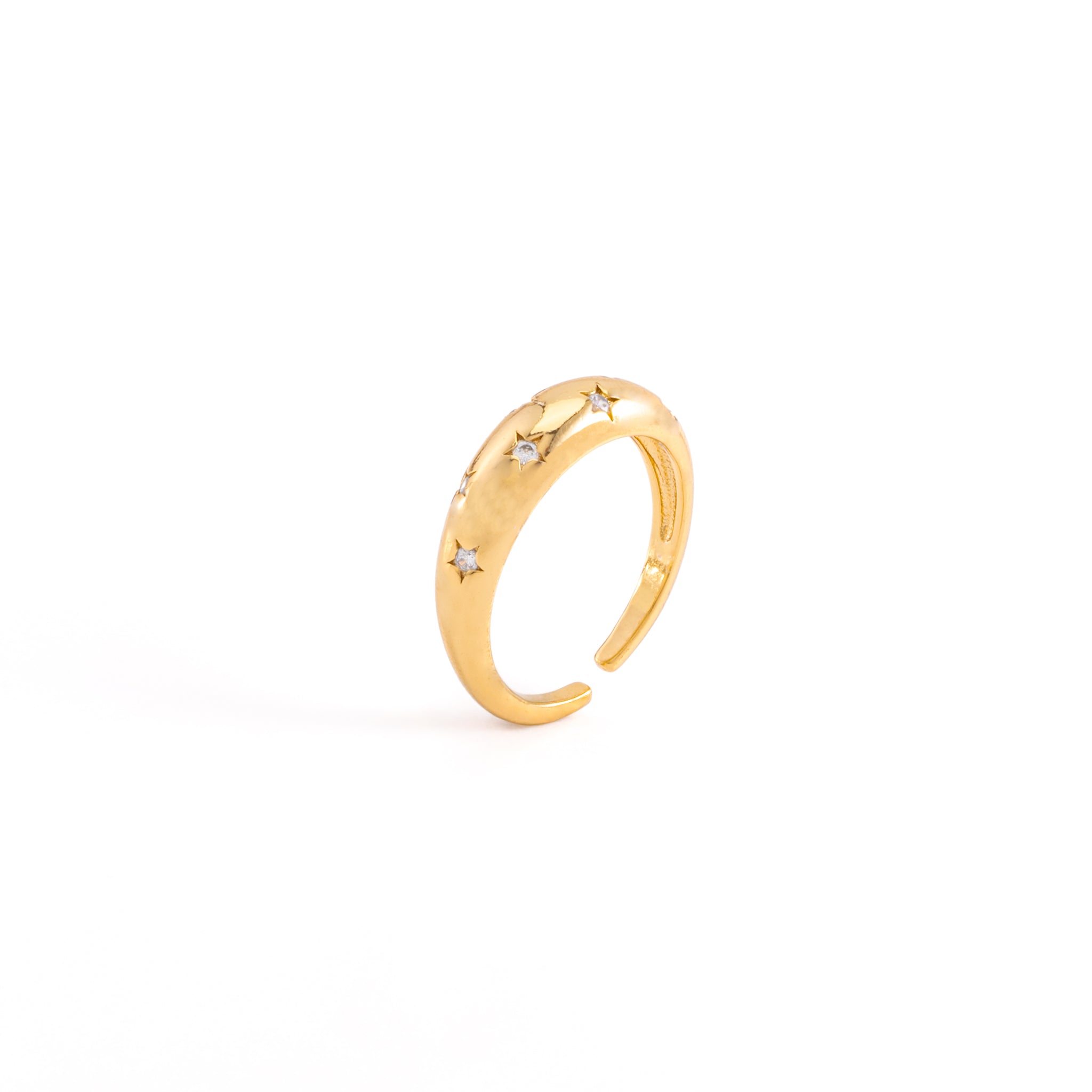 ANILLO AJUSTABLE ESTRELLAS Y PIEDRAS. Baño de oro. Joyería hipoalergénica....