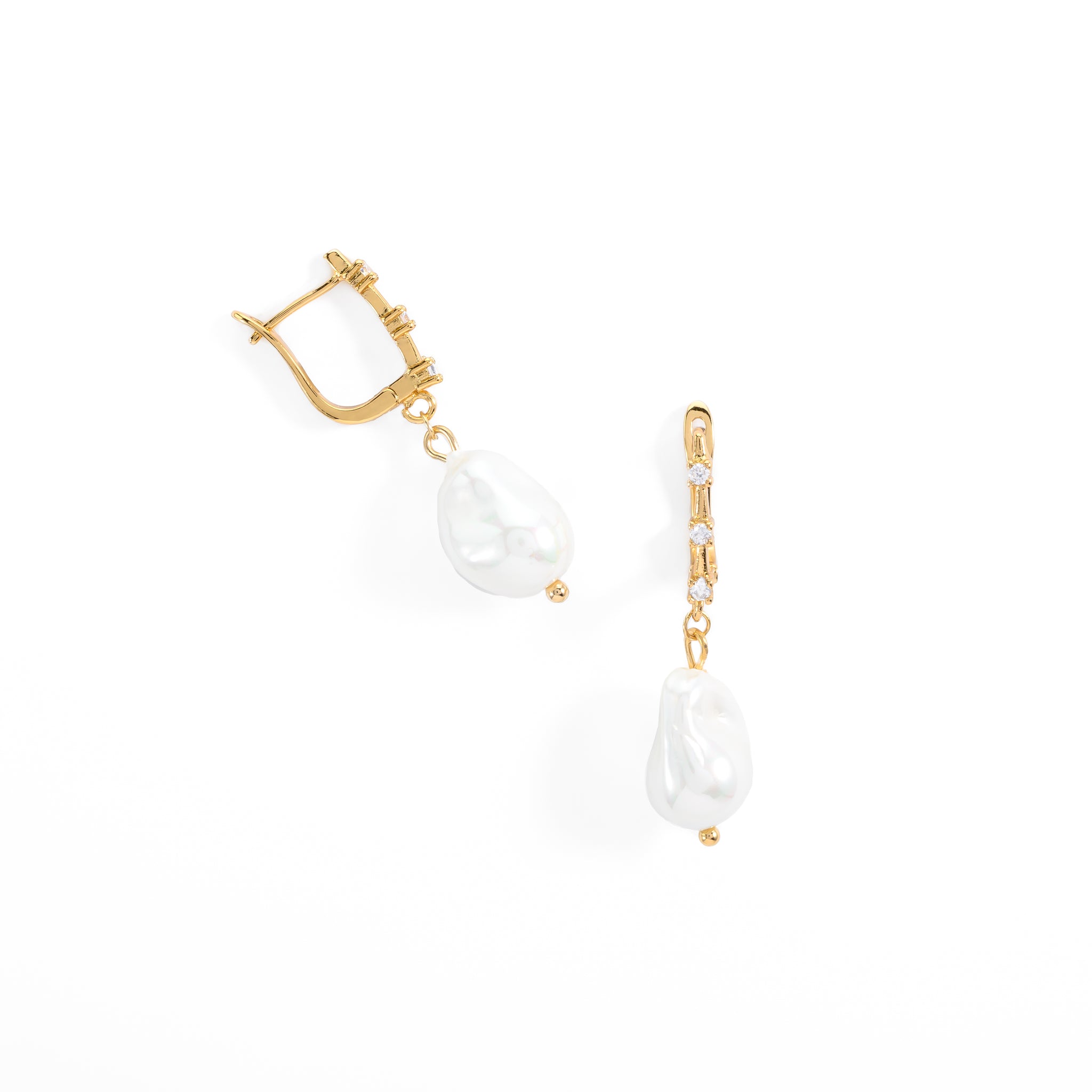 ARETE CON PERLA BARROCA. Baño de Oro. Joyería hipoalergénica. Joyería...