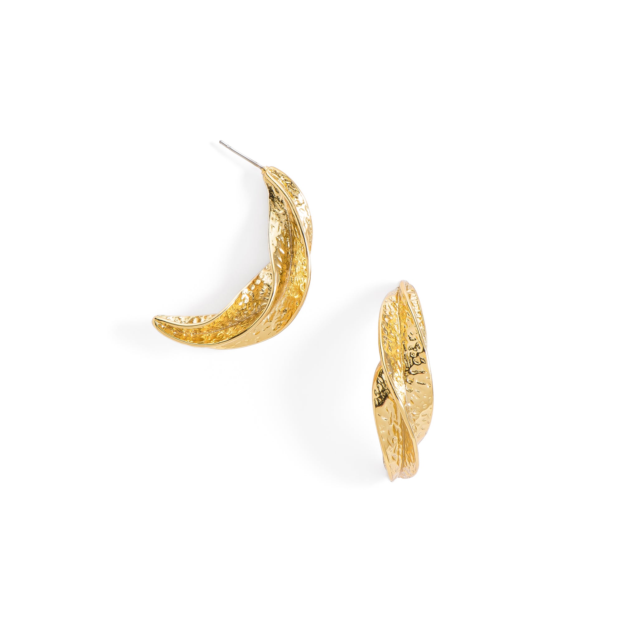 ARETE HOJA TORCIDA CON TEXTURA. Baño de Oro. Joyería hipoalergénica....