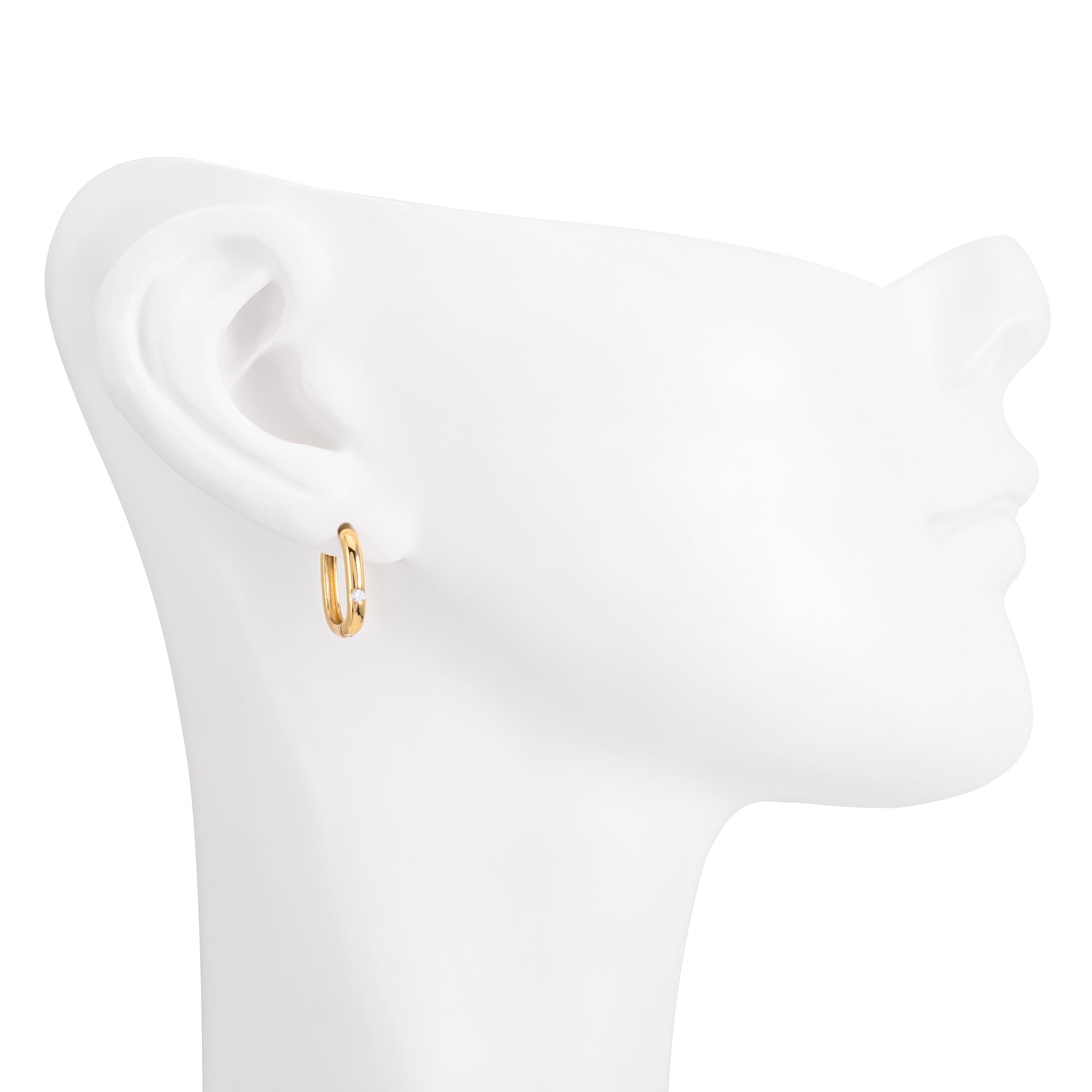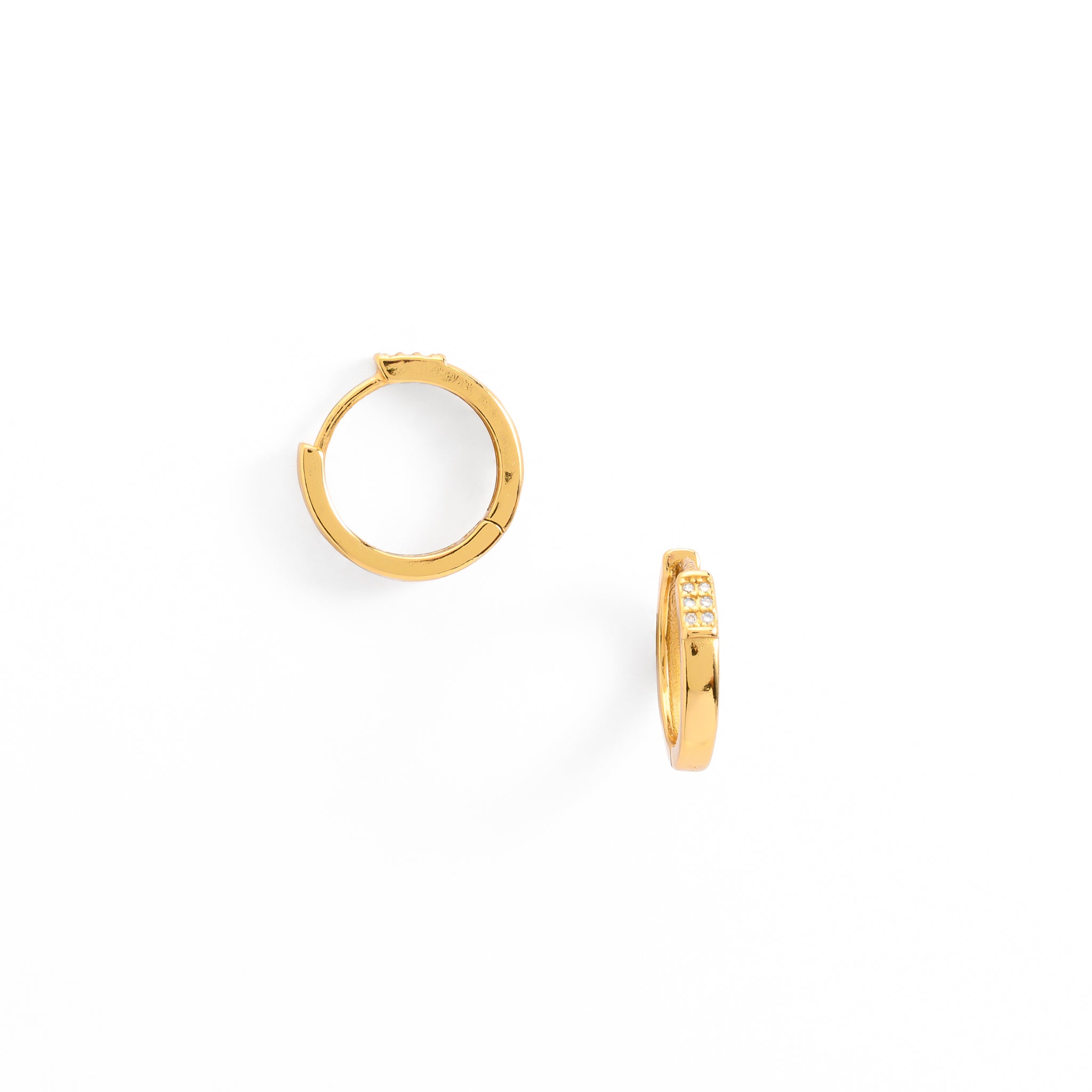 HUGGIE LISO CON DOS LÍNEAS CIRCONIAS. Baño de Oro. Joyería...