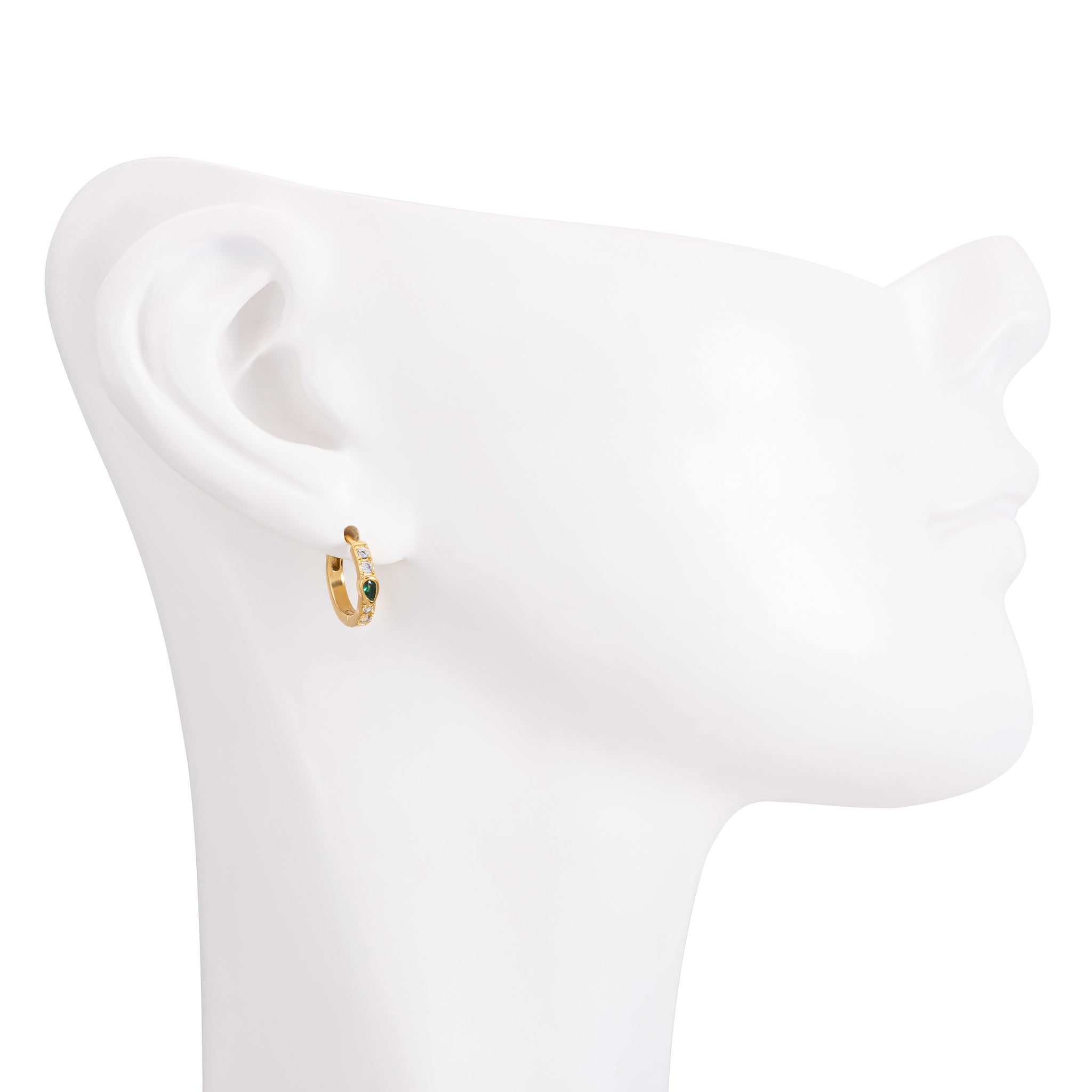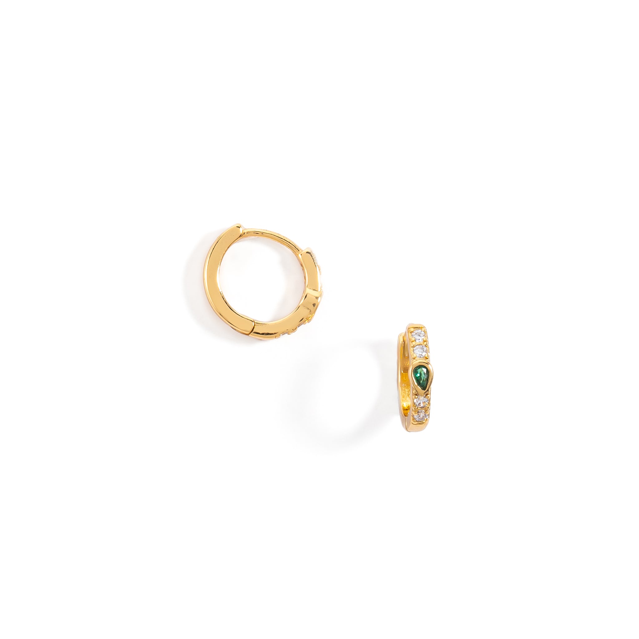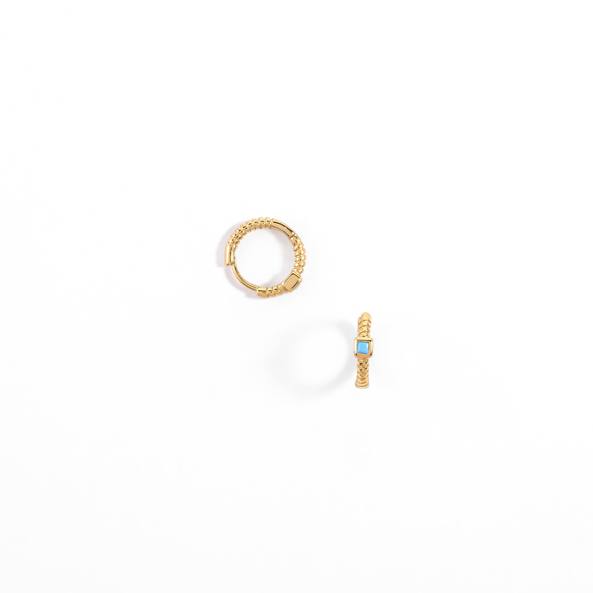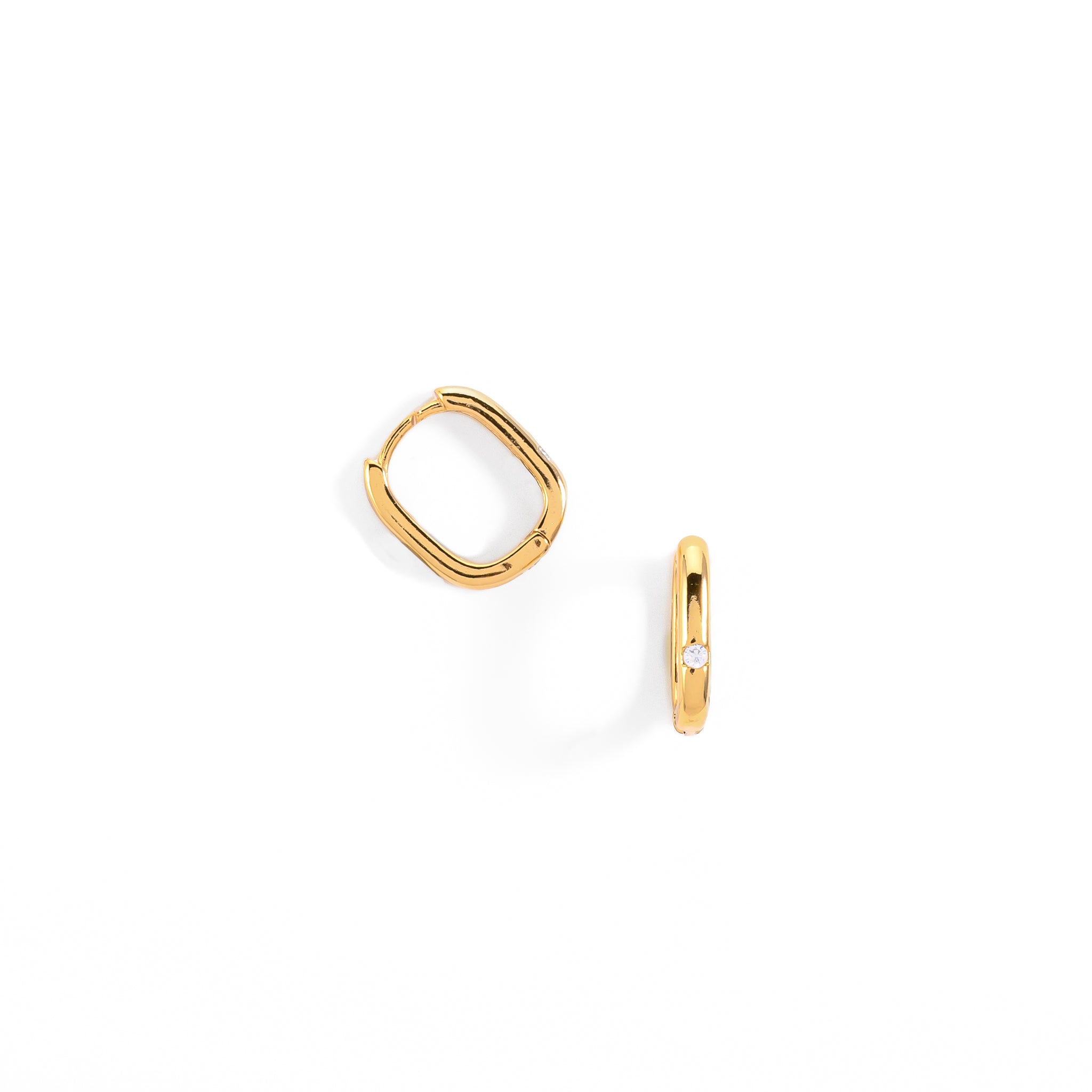 HUGGIE GUSANO CON CIRCONIA CENTRAL CUADRADA. Baño de Oro. Joyería...