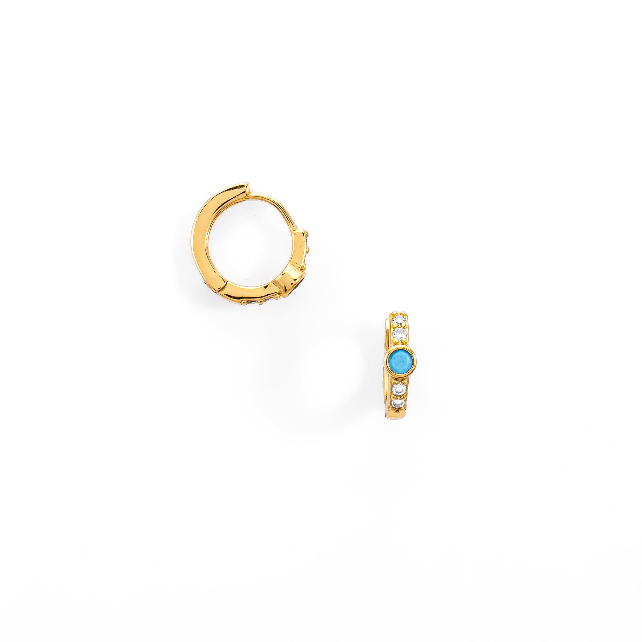 HUGGIE PIEDRA GOTA CON LINEA DE CIRCONIAS. Baño de Oro....