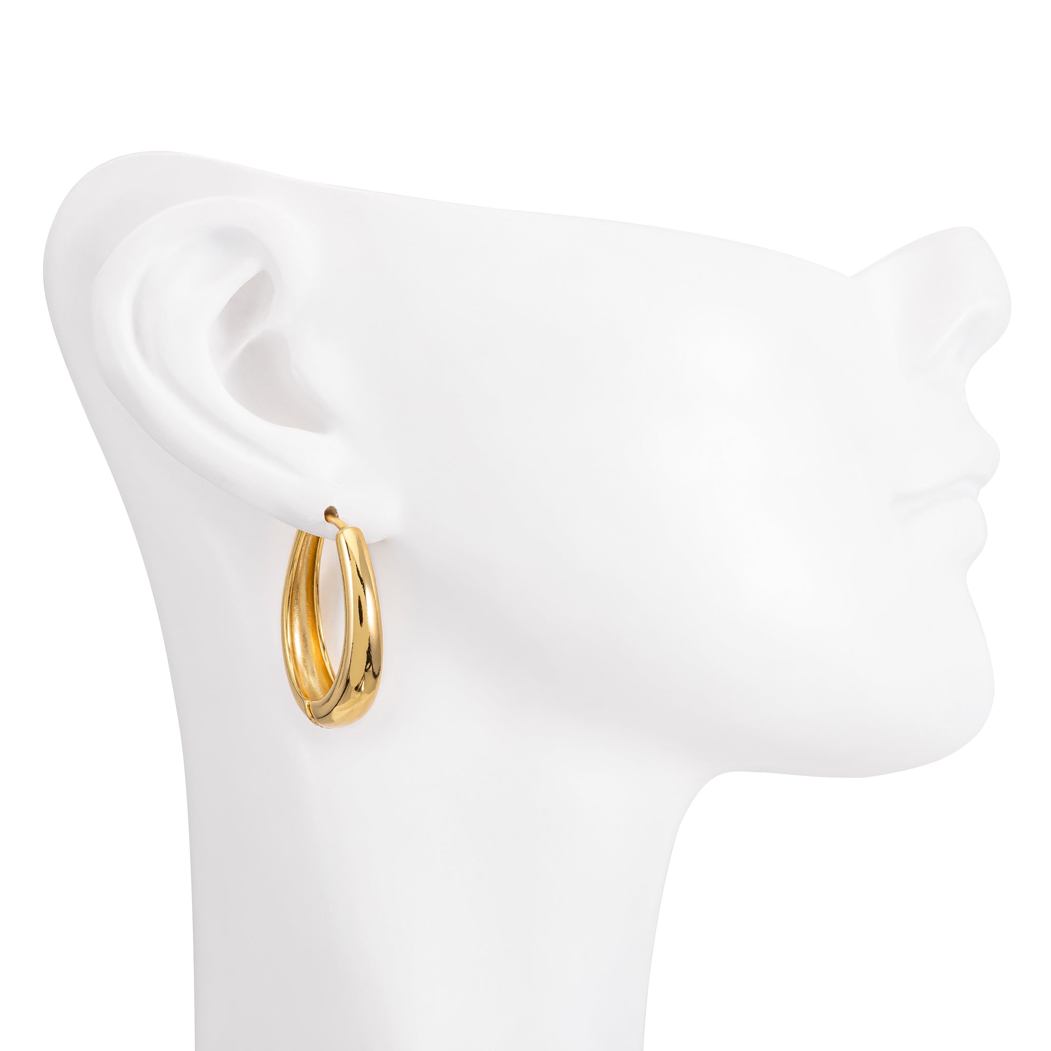 ARRACADA OVAL LISA 31MM HUECA. Baño de Oro. Joyería hipoalergénica....