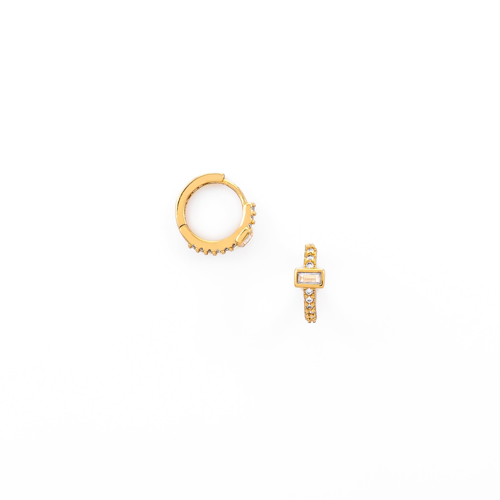 HUGGIE LINEA CIRCONIAS CON PIEDRA BAGUETTE. Baño de Oro. Joyería...