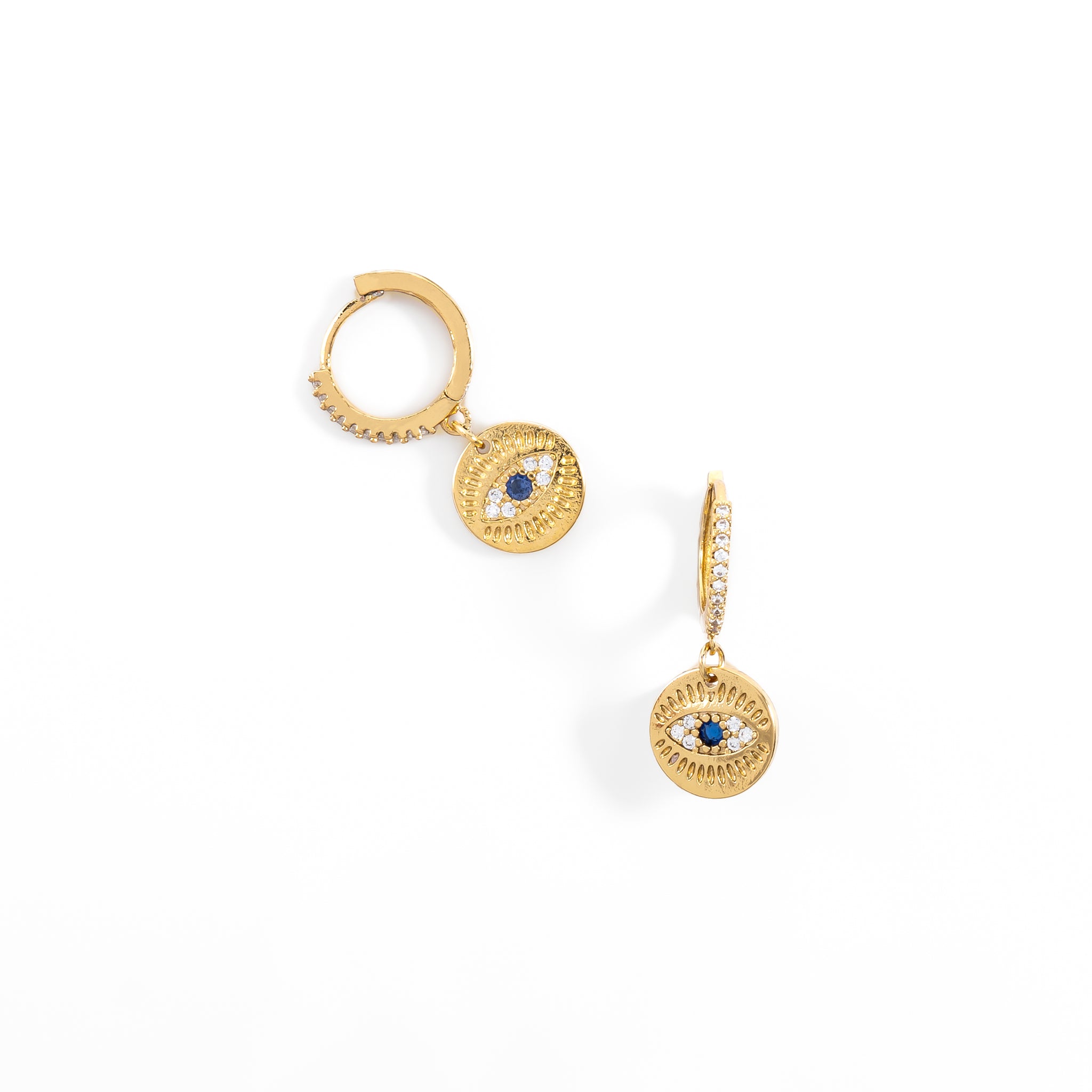 HUGGIE PIEDRAS CON COLGANTE DE OJO TURCO. Baño de Oro....
