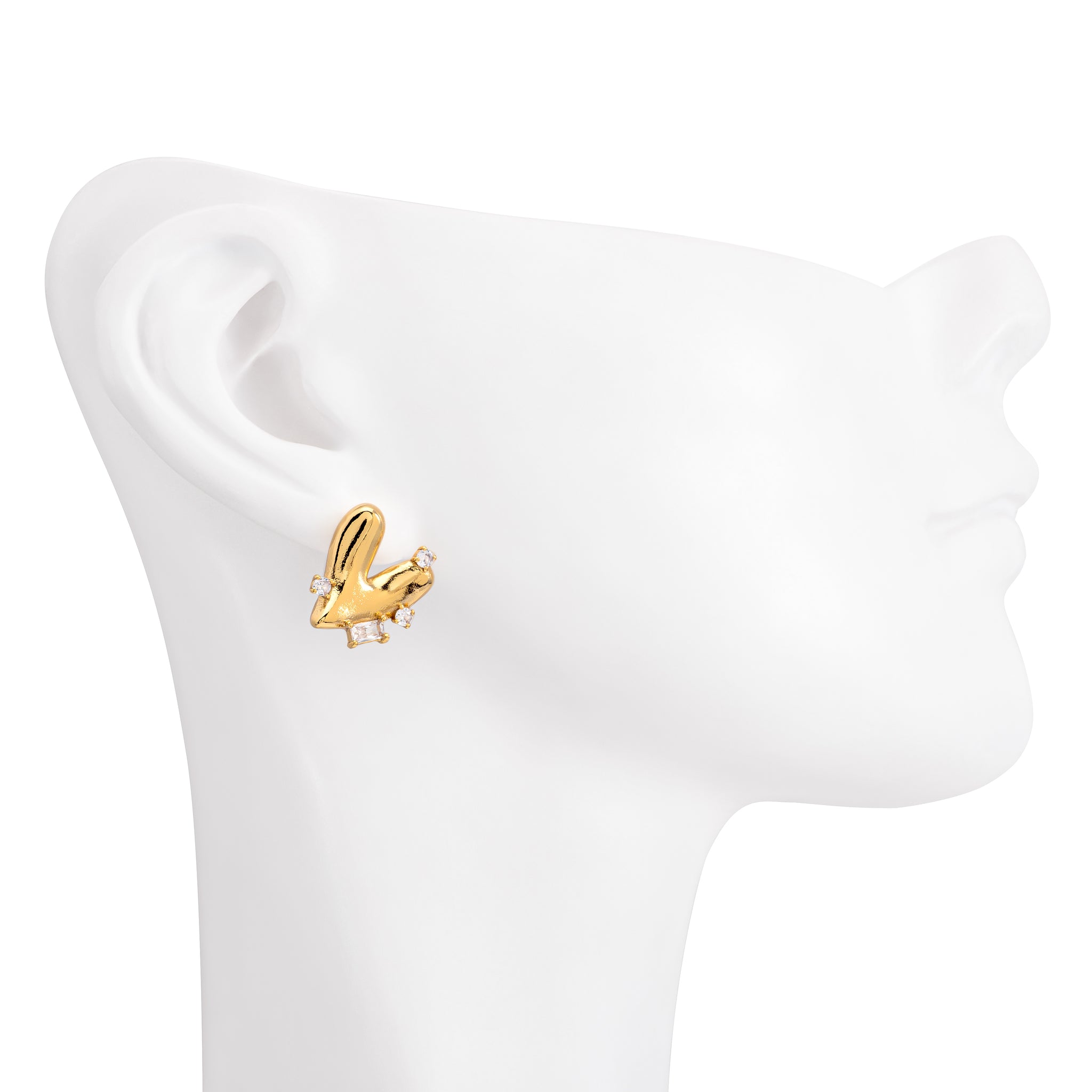 ARETE CORAZON LISO CON PIEDRAS. Baño de Oro. Joyería hipoalergénica....