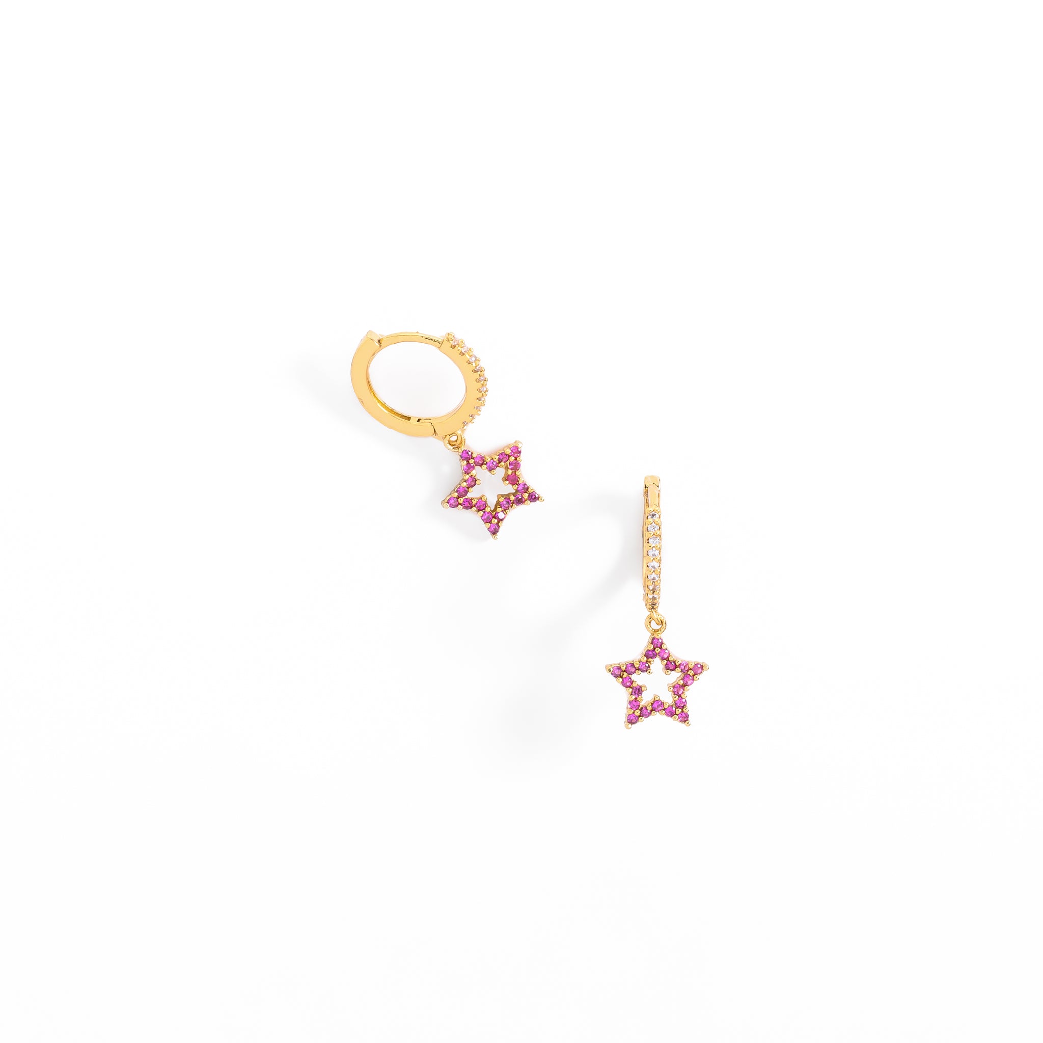 HUGGIE PIEDRAS CON ESTRELLA COLGANTE. Baño de Oro. Joyería hipoalergénica....