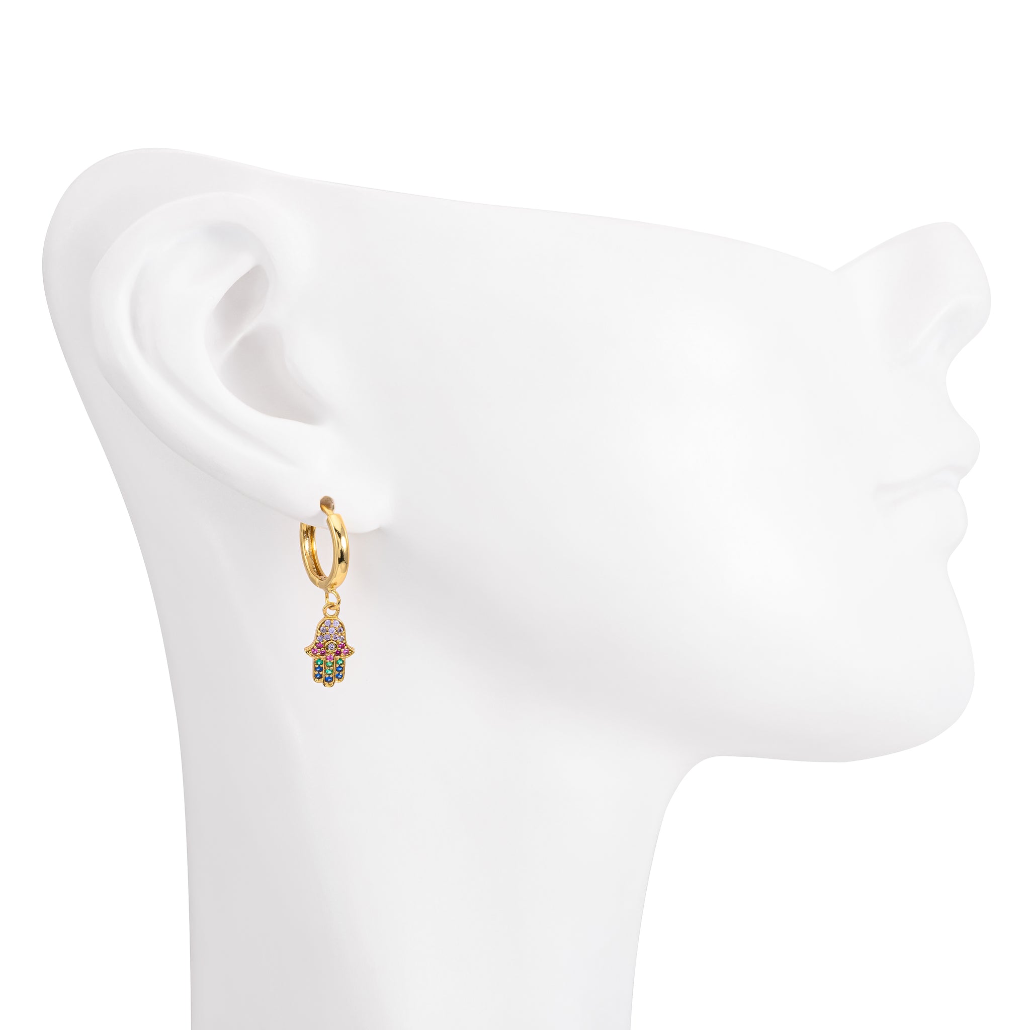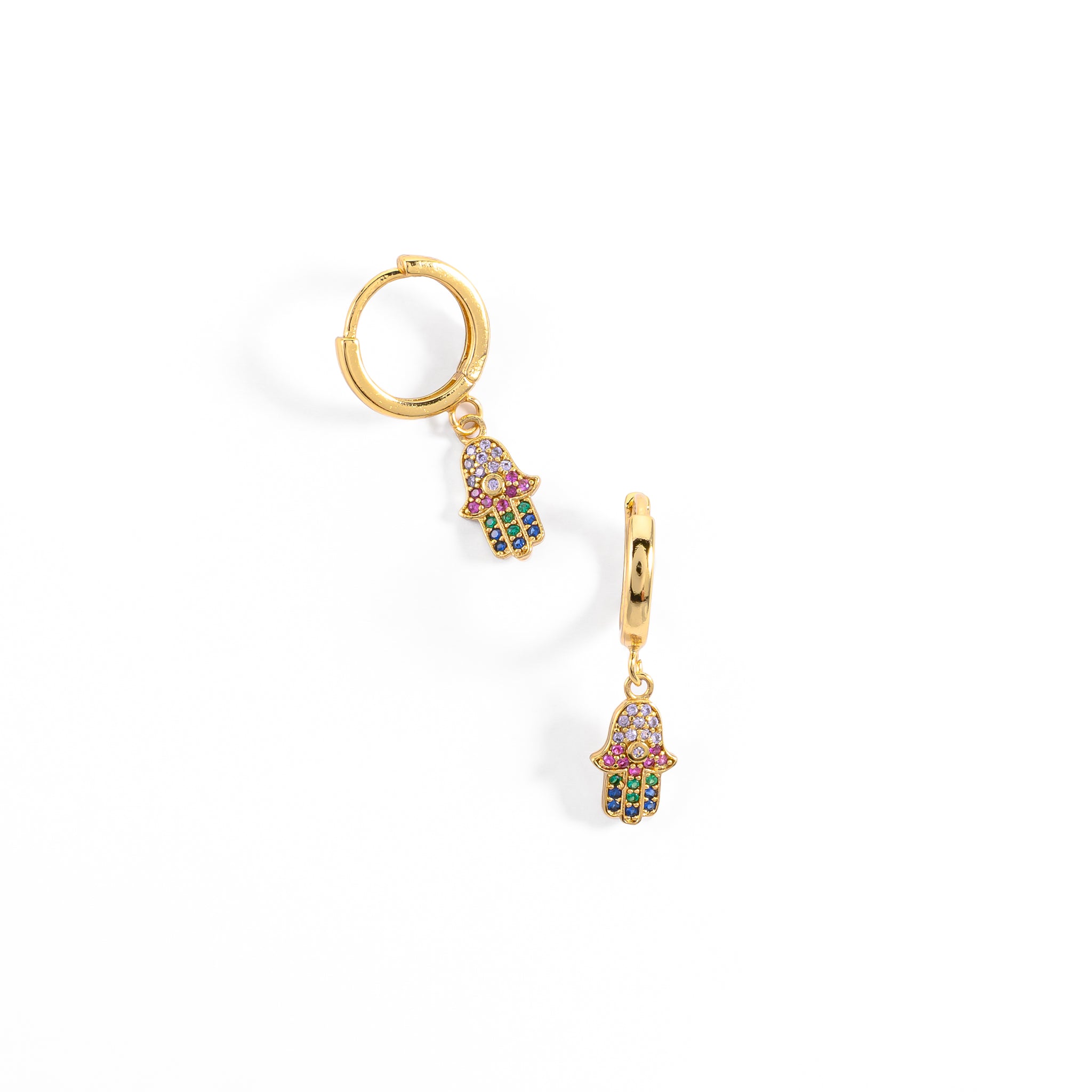 ARETE CON COLGANTE MANITA DE FATIMA. Baño de Oro. Joyería...