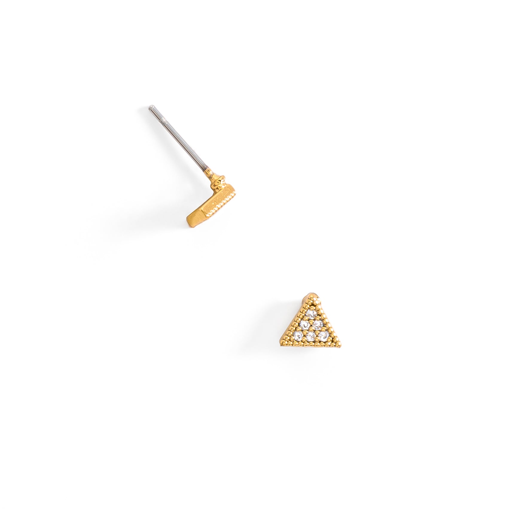 ARETE TRIANGULO CON PIEDRAS. Baño de Oro. Joyería hipoalergénica. Joyería...