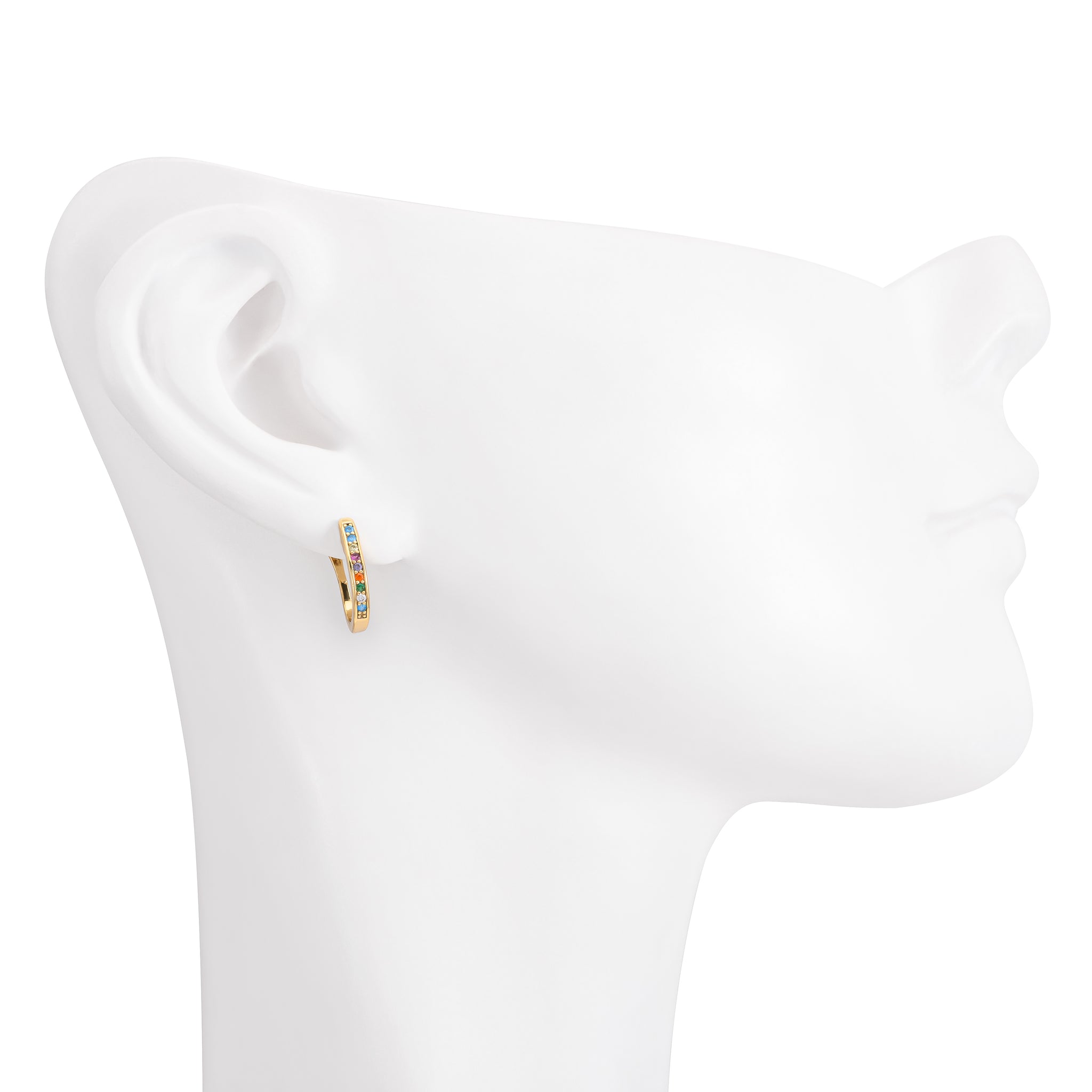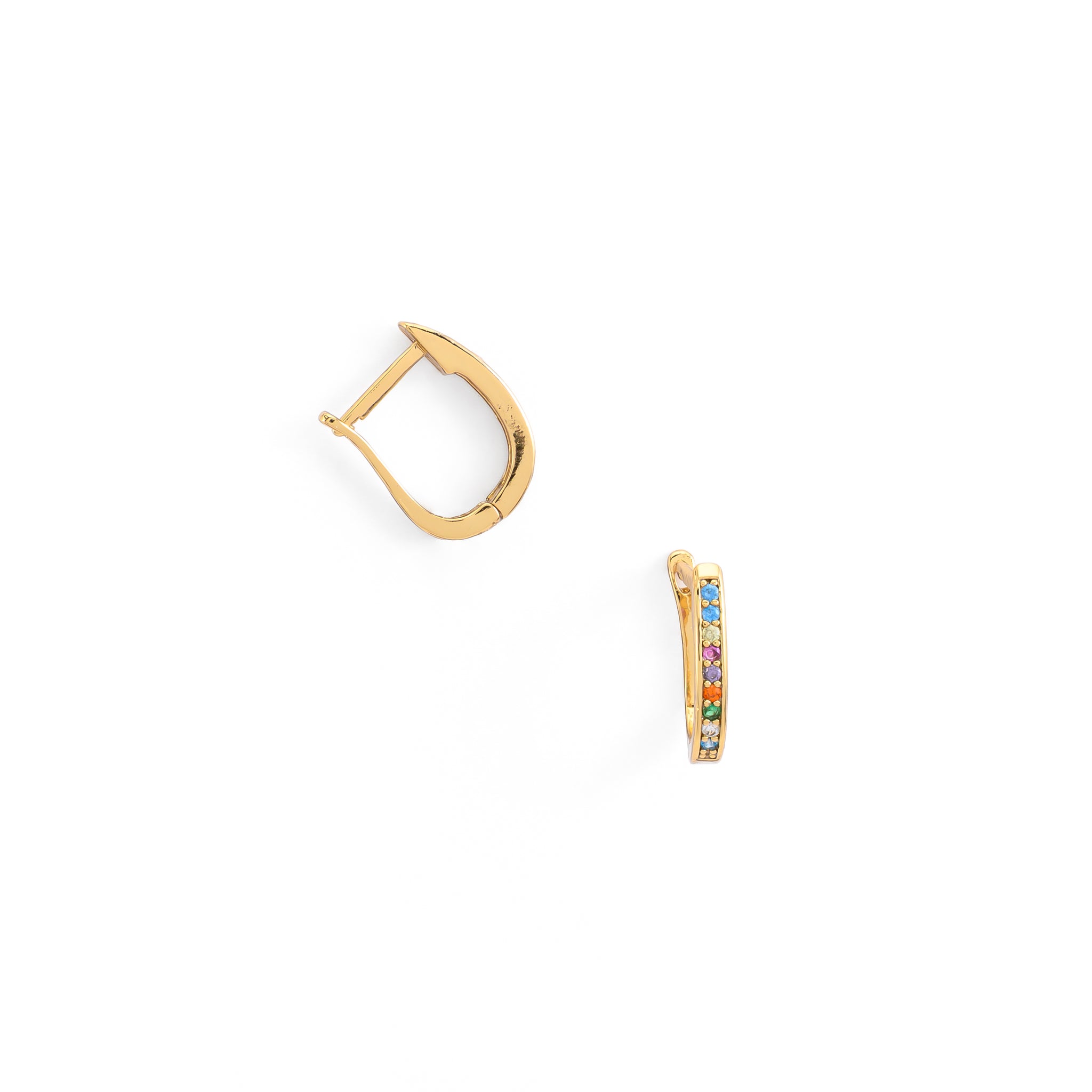 HUGGIE HERRADURA CON PIEDRAS MULTICOLOR. Baño de Oro. Joyería hipoalergénica....