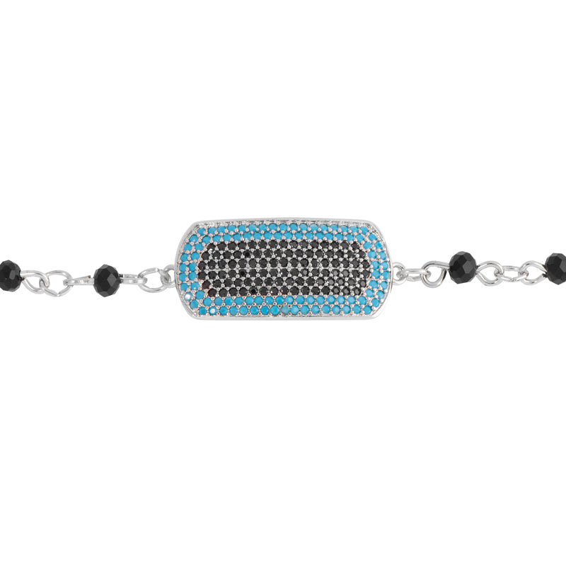 PULSERA CADENA DE CUENTAS TURQUESAS CON ZIRCONIA DE HOJA CENTRAL....